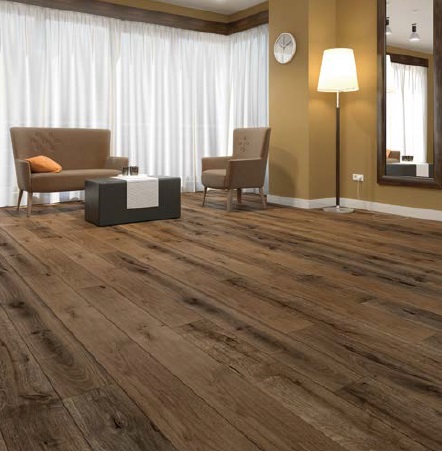 Podłoga dębowa. Struktura drewna zaznaczona dzięki procesowi szczotkowania i heblowania. Duża zmienność odcieni pomiędzy deskami.